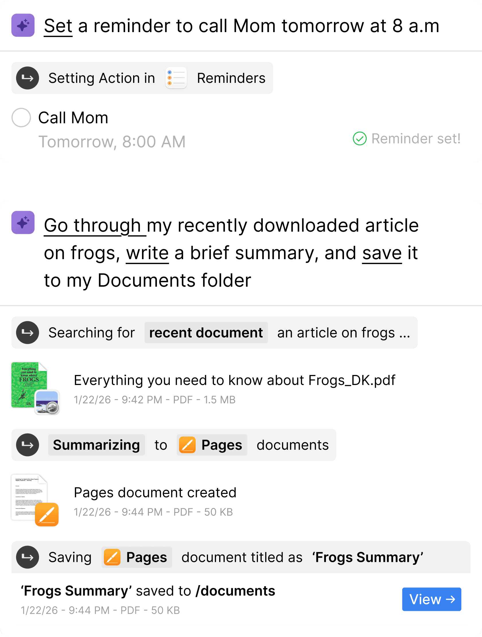 You type "Wake me up at 7:30 a.m." and instead of just seeing the Clock app icon in your search results, you see a fully populated alarm widget ready to confirm with one keystroke. The gulf between intent and execution shrinks to almost nothing.